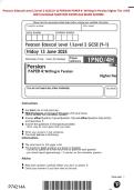 - Pearson Edexcel Level 3 GCE Persian Advanced PAPER 2: Translation into Persian and written response to works JUNE 2025 Combined QUESTION PAPER And MARK SCHEME • Examen