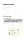 Het document omvat een samenvatting van de klassieke conditioneringstheorie. Het behaviorisme word er beknopt toegelicht en de proef van 'de hond van Pavlov' word uitgelegd. Het bevat een duidelijk schema waarin er een visuele voorstelling plaatsvind, maar ook een tabel waar de begrippen in duidelijke taal worden uitgelegd.