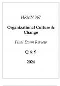 (UMGC) HRMN 367 Organizational Culture & Change Final Exam Review Q & S 2024
