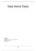 Dit is een complete take home toets waar mijn ziel in is gegaan :) Met een prachtig cijfer als eindresultaat, gebruik deze toetsuitwerking als inspiratie!