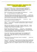FISDAP Airway Exam 2022 - Questions AndAnswers (100% Corect)From the atmosphere, what structures does air pass through duringventilation?Correct ans-Starts in atmosphere, then nose,nasopharyngeal space/orophargyneal space (if mouth breather), thenpharynx, larynx, trachea, bronchi, bronchioles, alveoliWhat is the purpose of the nasal passages and nasopharynx?Correctans-To warm/humidify air as it passes throughWhat is the difference between respiration and ventilation?Correct ans-Respiration refer...