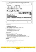 2025 Pearson Edexcel A Level Psychology Question Paper Option 3 June + Mark