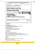 2025 Pearson Edexcel As Level Psychology Question Paper Option 1 June + Mark