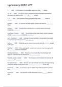 This document provides a full study guide for the IICRC UFT (Upholstery and Fabric Technician) exam for 2025/2026. It includes detailed questions and answers on upholstery fabrics, fiber identification, dye testing, pH effects, spotting procedures, cleaning methods (wet, dry, and foam), solvents, safety protocols, pre-inspection, and industry standards. It serves as a complete preparation resource for technicians pursuing certification and professionals reviewing upholstery cleaning practices.
