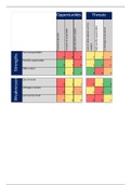 Explanation of the document: First fill in the SWOT analysis, the top three is automatically displayed in the confrontation matrix. Next, values ​​can be entered, (for example -1,0,1) in the empty fields of the confrontation matrix, and the tool itself generates colors depending on the value entered.