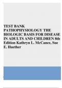 EST BANK FOR: MCCANCE: PATHOPHYSIOLOGY THE BIOLOGIC BASIS FOR DISEASE IN ADULTS AND CHILDREN8TH EDITION BY Kathryn L McCance, Sue E Huether Test bank Questions and Complete Solutions to All Chapters Understanding Pathophysiology