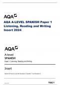 AQA A-LEVEL SPANISH Paper 1 Listening, Reading and Writing Insert 2024 A-level SPANISH