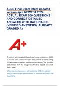 ACLS Final Exam latest updated version april NEWEST 2024 ACTUAL EXAM 500 QUESTIONS AND CORRECT DETAILED ANSWERS WITH RATIONALES (VERIFIED ANSWERS) |ALREADY GRADED A+