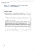 Uitgebreide samenvatting van de (12) verplichte papers rondom het vak 'Brand Management' gegeven door Henk Roest betreft de master Marketing Management. Belangrijke bevindingen zijn geel gemarkeerd, moeilijke engelse woorden zijn vertaald en andere belangrijke zaken zijn dik gedrukt. Het document is voorzien van een handige inhoudsopgave per lecture. Voor eventuele formules verwijs ik graag naar de originele papers.