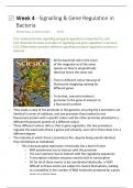 Complete lecture notes of BIO231 Microbial Physiology and Growth week 4 on Signalling & Gene Regulation in Bacteria. Includes all the lectures slides content along with word-for-word commentary from lecturer and in red is my personal commentary that explains some concepts in easier terms.