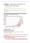 Complete lecture notes of BIO231 Microbial Physiology and Growth week 3 on Organisation and Division of The Bacterial Chromosome. Includes all the lectures slides content along with word-for-word commentary from lecturer and in red is my personal commentary that explains some concepts in easier terms.