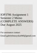 IOP3706 Assignment 1 Semester 2 Memo (COMPLETE ANSWERS) Due August 2025