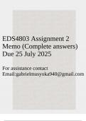 EDS4803 Assignment 2 Memo (Complete answers) Due 25 July 2025