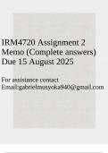 IRM4720 Assignment 2 Memo (Complete answers) Due 15 August 2025