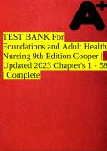 TEST BANK For Foundations and Adult Health Nursing 9th Edition Cooper | Updated 2023 Chapter's 1 - 58 | Complete