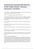 ESTHETICIAN STATE BOARD WRITTEN STUDY GUIDE (TEXAS) ~Sanitation, Disinfection, and Safety~ Questions with correct Answers (A+ GRADED 100% VERIFIED)