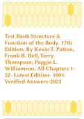 Structure & Function of the Body – 17th Edition (Kevin T. Patton, Frank B. Bell, Terry Thompson, Peggie L. Williamson) – Complete Test Bank with Verified Answers (Chapters 1–22, 2025 Edition)