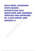 GOLD BOOK LOUISIANA STATE BOARD : ESTHETICIAN 2024 QUESTIONS AND ANSWERS VERIFIED AND APPROVED BY A PHD EXPERT AND GRADED A+
