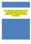Texas Principles of Real Estate 1 Exam Practice Questions and Answers Verified 2023 - Champions School of Real Estate