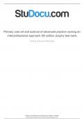 TEST BANK FOR PRIMARY CARE ART AND SCIENCE OF ADVANCED PRACTICE NURSING-AN INTERPROFESSIONAL APPROACH 6TH EDITION- DUNPHY ISBN-13: 978-0-8036-6718-1 Unit I Caring-Based Nursing: The Art Chapter 1 Primary Care in the Twenty-First Century: A Circle of Caring Chapter 2 Caring and the Advanced Practice...