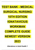TEST BANK - MEDICAL SURGICAL NURSING 10TH EDITION IGNATAVICIUS WORKMAN COMPLETE GUIDE NEWEST VERSION 2023/2024