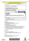 - 2025 Pearson Edexcel Level 3 GCE Physical Education Advanced COMPONENT 2: Psychological and Social Principles of Physical Education Combined Question Paper & Final Marking Scheme • Examen