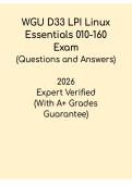 This WGU D33 – LPI Linux Essentials 010-160 Exam Study Guide PDF is a beginner-friendly and exam-focused resource designed to help Western Governors University students prepare effectively for the Linux Essentials certification, covering key topics such as Linux operating system fundamentals, command-line usage, file systems, permissions, processes, networking basics, security, and open-source concepts, with clear explanations, structured summaries, and revision-ready content aligned with the ...