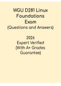 This WGU D281 Linux Foundations Exam Study Guide PDF is a comprehensive and beginner-friendly resource designed to help Western Governors University students prepare effectively for the Linux Foundations course, covering essential topics such as Linux operating system fundamentals, command-line usage, file systems, permissions, processes, networking basics, security, and open-source concepts, with clear explanations, structured summaries, and exam-focused insights to support efficient revision a...