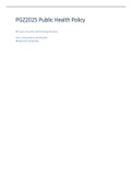 This is a summary of all cases and lectures of course 5 Public Health Policy. The cases are very extensive by using all literature. Sources are mentioned in the document. Additions from the tutorial are marked in red. The training lectures are also included. I passed this exam with a 9.