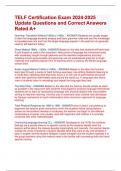 - TELF Certification Exam 2024-2025 Update Questions and Correct Answers Rated A+ • Exam (elaborations)