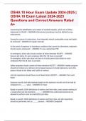OSHA 10 Hour Exam Update 2024-2025 | OSHA 10 Exam Latest 2024-2025 Questions and Correct Answers Rated A+