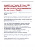 Good Clinical Practice ICH Exam 2024- 2025| Good Clinical Practice Exam Update 2024-2025 Latest Questions and Correct Answers Rated A+