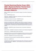Florida Restricted Barber Exam 2024- 2025 | Restricted Barber Florida Exam 2024-2025 Questions and Correct Answers Rated A+