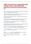 OSHA 10 Actual Exam Update 2024-2025 | OSHA 10 Exam Latest 2024-2025 Questions and Correct Answers Rated A+