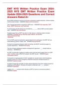 EMT NYS Written Practice Exam 2024- 2025 NYS EMT Written Practice Exam Update 2024-2025 Questions and Correct Answers Rated A+