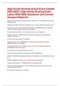 High Acuity Nursing Actual Exam Update 2024-2025 | High Acuity Nursing Exam Latest 2024-2025 Questions and Correct Answers Rated A+