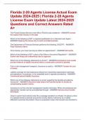 Florida 2-20 Agents License Actual Exam Update 2024-2025 | Florida 2-20 Agents License Exam Update Latest 2024-2025 Questions and Correct Answers Rated A+