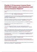 Florida 2-15 Insurance License Exam 2024-2025 Update Latest Questions and Correct Answers Rated A+