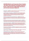 2024-2025 EPA Lead Inspector Exam Update Latest | EPA Lead Inspector Actual Exam Latest Questions and Correct Answers Rated A+