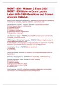 MGMT 1000 Exam Update 2024-2025 | MGMT 1000 Latest Exam Test 2024-2025 Questions and Correct Answers Rated A+