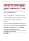 Michigan Builders License Actual Exam Update 2024-2025 | Michigan Builders License Exam Update Latest 2024-2025 Questions and Correct Answers Rated A+