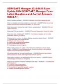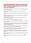 SERVSAFE Manager 2024-2025 Exam Update 2024 SERVSAFE Manager Exam Latest Questions and Correct Answers Rated A+