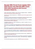 Nevada DMV Permit Exam Update 2024- 2025 Permit Test (Nevada DMV) Exam 2024-2025 Questions and Correct Answers Rated A+