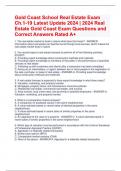 Gold Coast School Real Estate Exam Ch.1-19 Latest Update 2024 | 2024 Real Estate Gold Coast Exam Questions and Correct Answers Rated A+