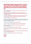 Real Estate Sale Associate Pre License Course Exam Prep 2024 Latest Update Questions and Correct Answers Rated A+