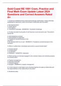 Gold Coast RE 1001 Cram, Practice and Final Math Exam Update Latest 2024 Questions and Correct Answers Rated A+