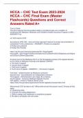 HCCA – CHC Text Exam 2023-2024 HCCA – CHC Final Exam (Master Flashcards) Questions and Correct Answers Rated A+