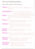 Summarized notes reviewing the respiratory system: Lung structure and functions, photosynthesis, cellular respiration, Breathing Process, Exchange of Gases, Inhalation and Exhalation, Pathway of Air, Structure of Alveolus and Trachea, Gaseous exchange and Diseases of the Breathing System: pleurisy, Lung cancer, Pneumonia, Bronchitis Asthma, Emphysema.