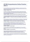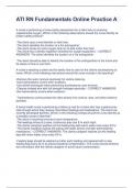 ATI RN Fundamentals Online Practice 2023 A with NGN A nurse is admitting a client who has an abdominal wound with a large amount of purple tissue drainage. Which of the following types of transmission precautions should the nurse initiate? Protective environment Airborne precautions Droplet precautions Contact precautions - CORRECT ANSWERS Contact precautions A nurse is caring for a client who is expressing anger about his diagnosis of colorectal cancer. Which of the following acti...