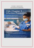 CNA Chapter 3 – Infection Prevention practice questions with verified rationales are designed to help Certified Nursing Assistant students master essential infection control concepts. This resource covers Standard Precautions, hand hygiene, personal protective equipment (PPE), and transmission-based precautions, including Contact, Droplet, and Airborne isolation. The questions are evidence-based and aligned with CDC, OSHA, and CNA training standards to promote safe clinical practice and exam r...